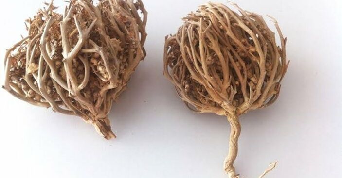 Görünüm olarak kapalı yumru şeklinde bir eli andıran bu ot, kuru dal rengindedir ve tad olarak da tarçını anımsatır.